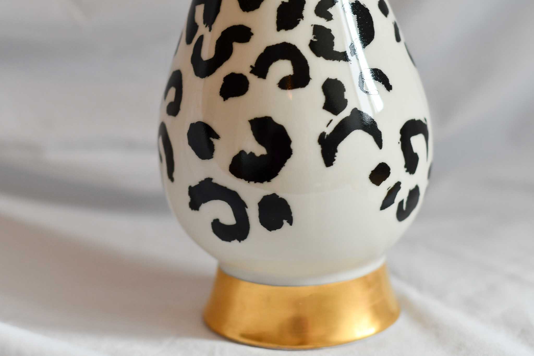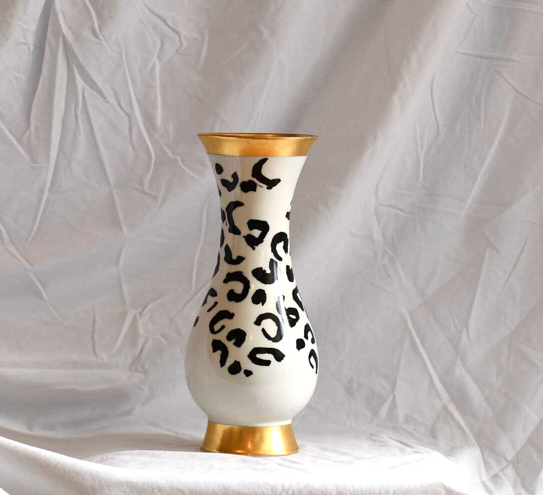 Vintage-Vase aus Porzellan (Höhe ca. 30 cm) mit permanentem Druck in schwarz (keramischer Siebdruck im Transferverfahren).